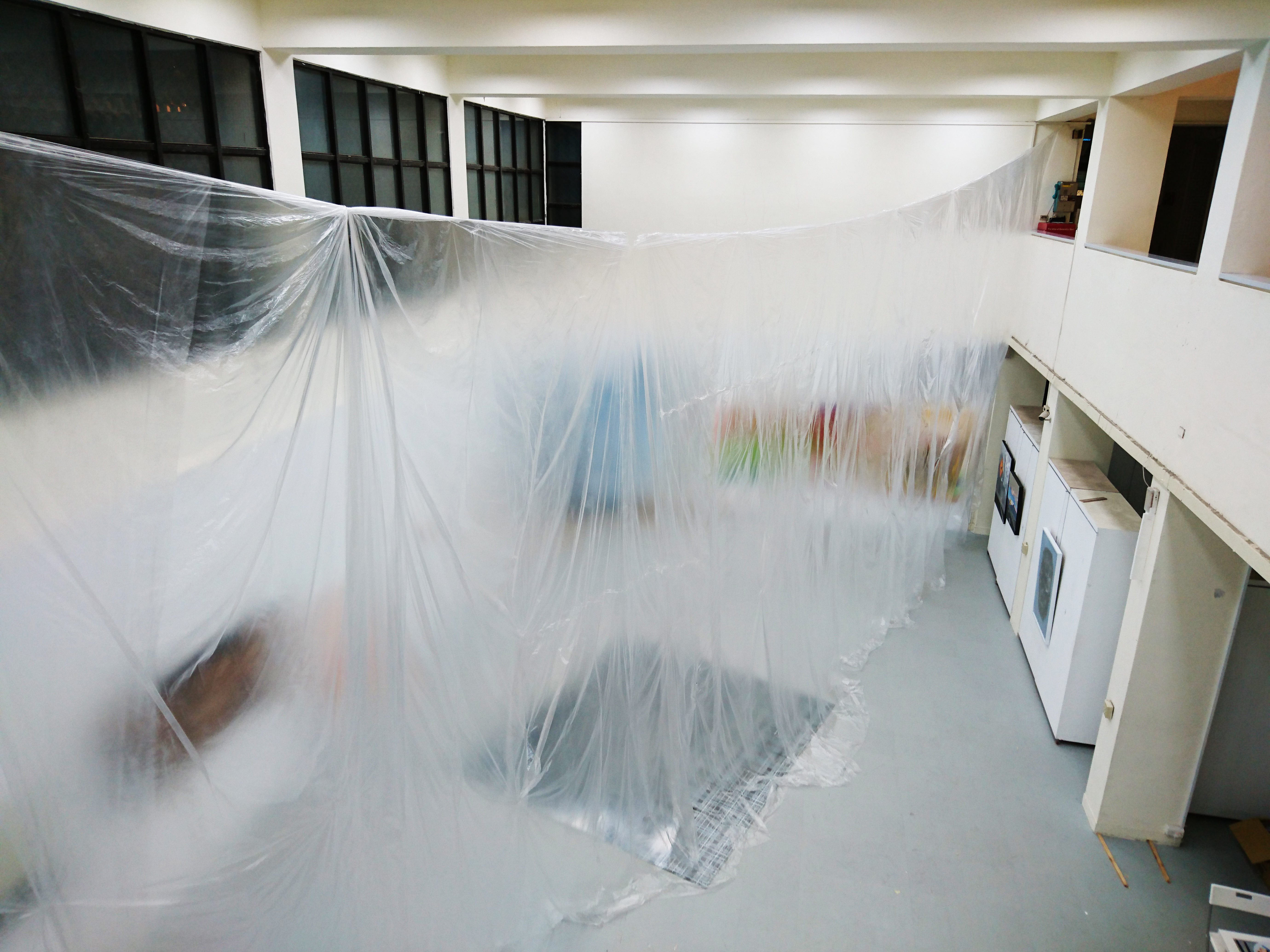 塑膠瀑布, 2017, 塑膠防塵布, 尺寸衣空間而定